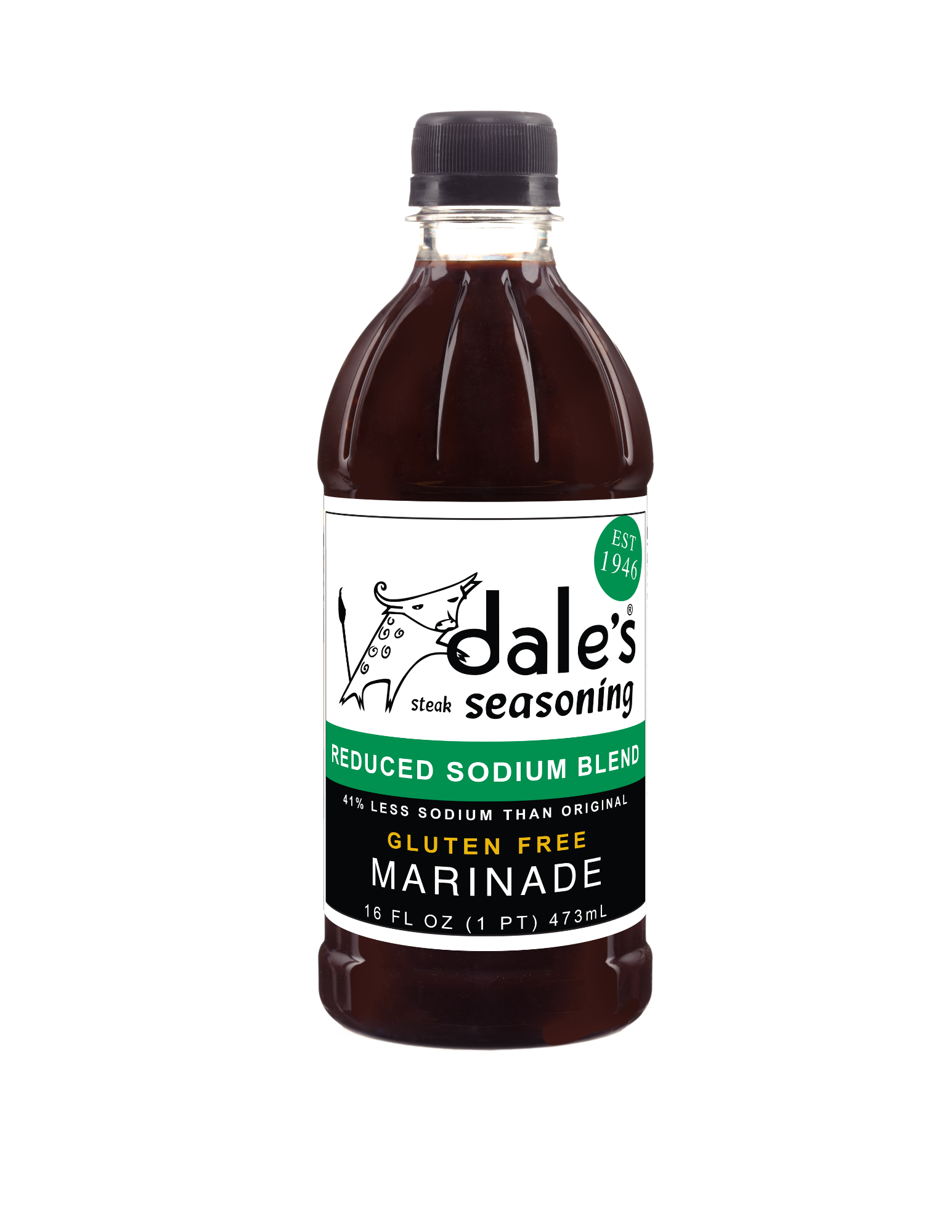 Dale’s Reduced Sodium Blend is a savory blend of exotic spices that enhances the flavor of beef, pork, lamb, poultry, fish, wild game and vegetables. Because Dale’s Reduced Sodium Blend is not as highly concentrated as Original Dale’s Seasoning, we suggest a longer marinating time in preparing your meat. As always, for best results, just shake well and add to food before and during cooking. We recommend refrigerating this product after opening.