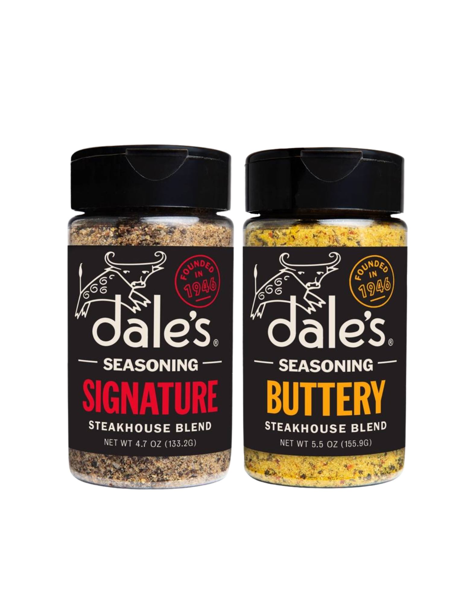 This two-pack features our bold Signature Steakhouse Blend alongside our rich, savory Buttery Steakhouse Blend — designed to complement each other and elevate everything from steaks and burgers to potatoes, vegetables, and more.